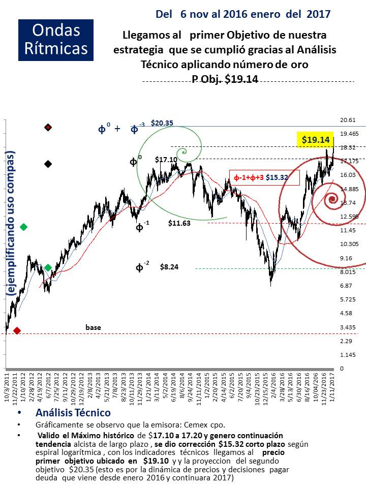 En el análisis técnico daremos ejemplos para la aplicación de las ondas rítmicas de puntos φ, el uso de la espiral logarítmica y la interrelación que se tiene con los gráficos como: velas japonesas, osciladores técnicos, promedios móviles, administración de riesgos, bandas de bollinger entre otros), todo ello con la finalidad de que cuente con herramientas de análisis adicionales al realizar sus inversiones.